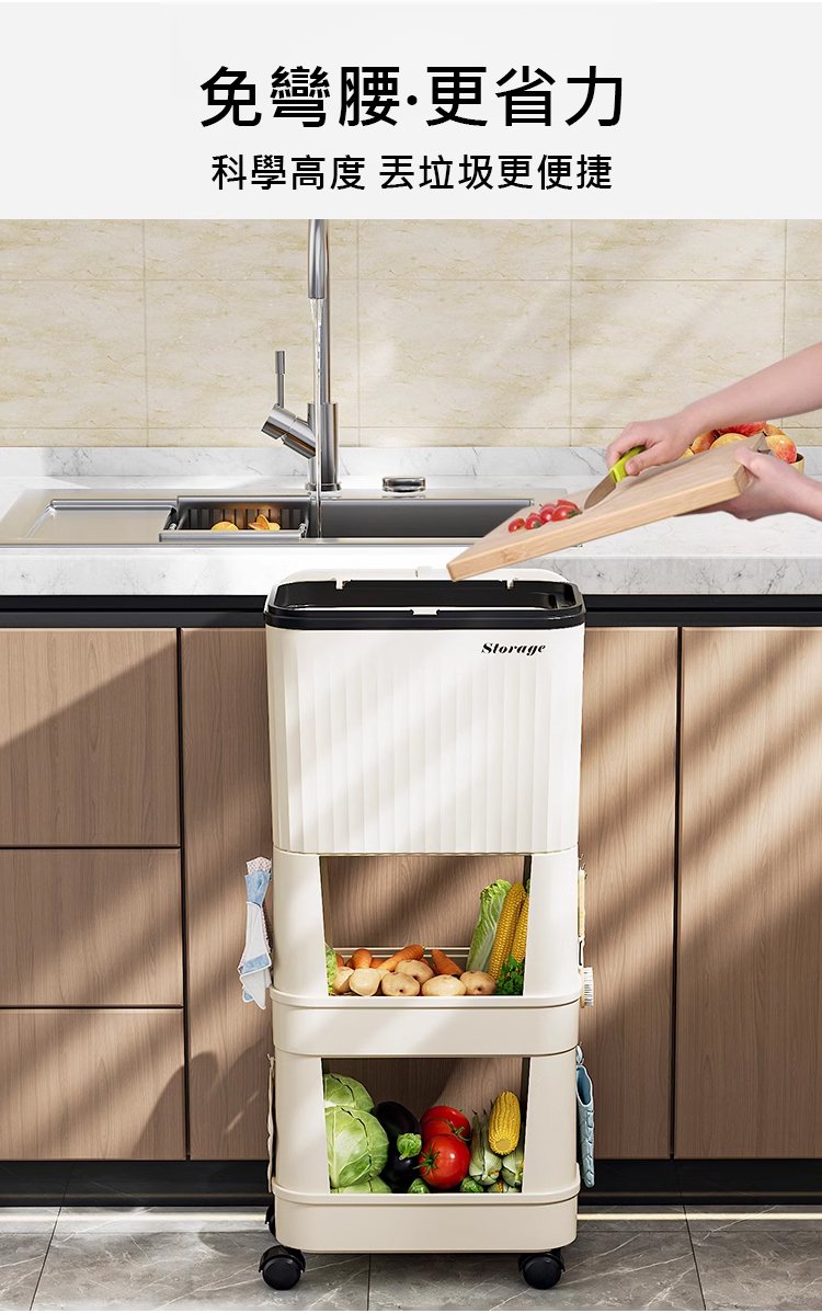 半小時前【不彎腰】家用可移動多功能置物垃圾桶 - 【超殺*贈20垃圾袋】1入組$279